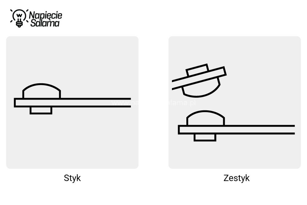 - zestyk przełączny (NO + NC na jednym torze, tzw. changeover).