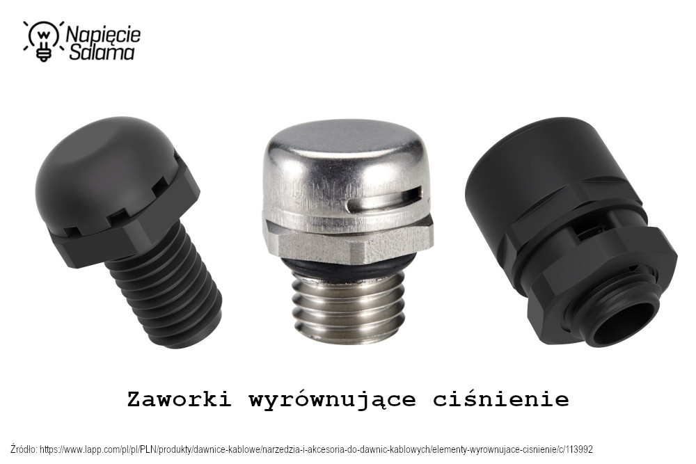 - Rozważ zastosowanie w obudowie zaworków wyrównujących ciśnienie. Zaworki z membraną umożliwiają kontrolowaną wymianę powietrza, jednocześnie blokując wodę i pył. Stabilizują ciśnienie w rozdzielnicy i ograniczają zasysanie wilgotnego powietrza przy nagłych zmianach temperatury. Znacząco zmniejszają ryzyko kondensacji, a tym samym poprawiają trwałość aparatury.