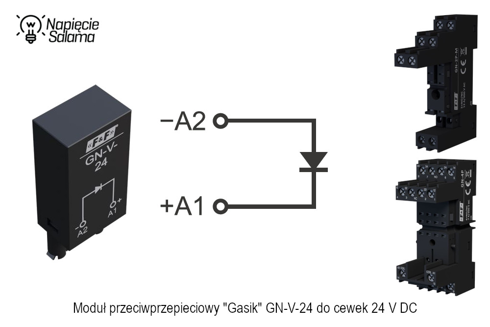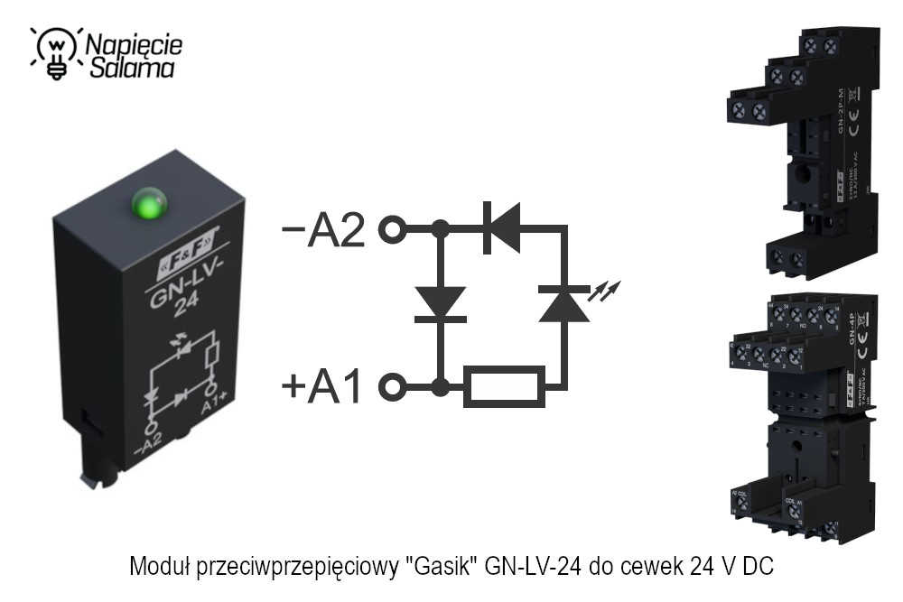 GN‑LV‑24 – moduł przeciwprzepięciowy z sygnalizacją LED dla cewek 24 V DC