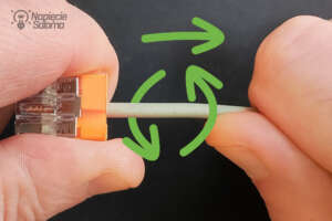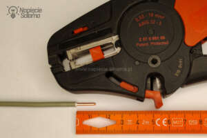 | Wyciąganie żyły przewodu z szybkozłączki | Żyła jednodrutowa po wyjęciu z szybkozłączki ma charakterystyczne ślady po sprężynie |