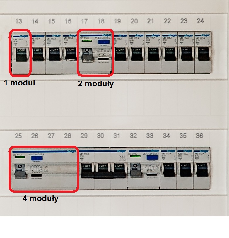 1 moduł – 1-fazowy wyłącznik nadprądowy potocznie lecz błędnie nazywany bezpiecznikiem