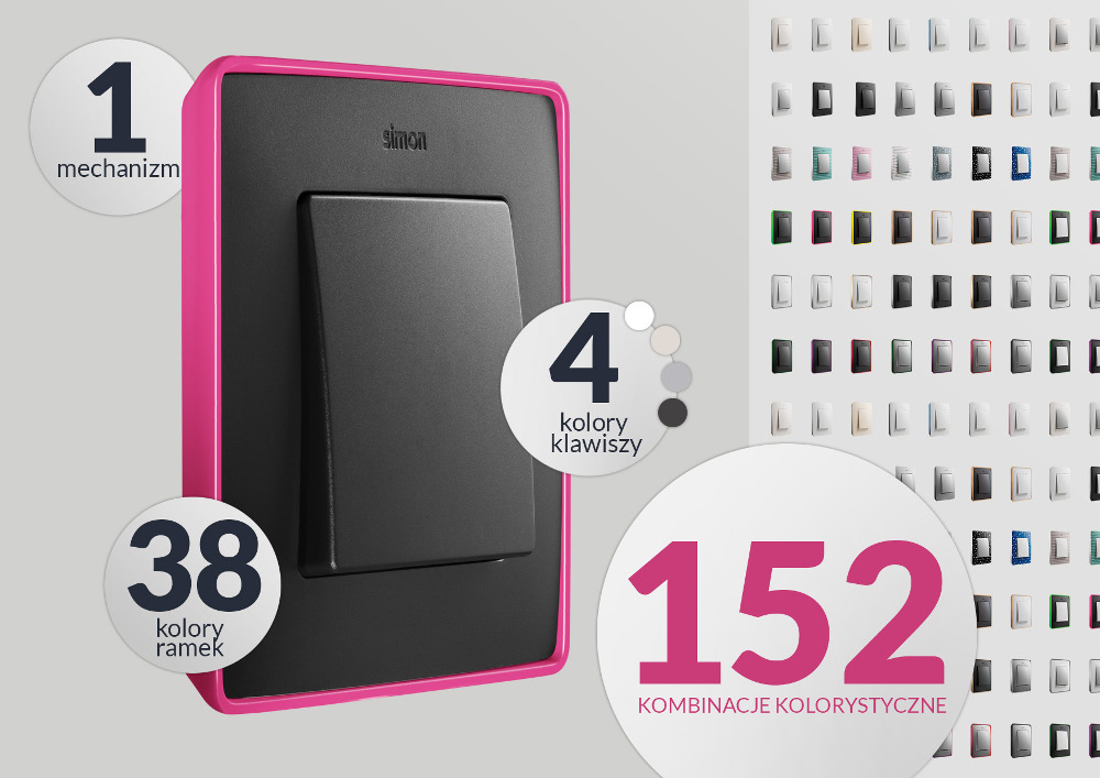 - 38 kolorów ramek które możesz zamontować na mechanizm