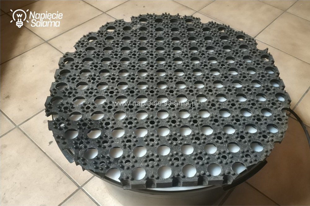 Teraz z całością (miska podgrzewana i zewnętrzna obudowa) należy obchodzić się bardzo ostrożnie (najlepiej nie przestawiać przynajmniej do czasu pełnego stwardnienia pierwszej warstwy piany).