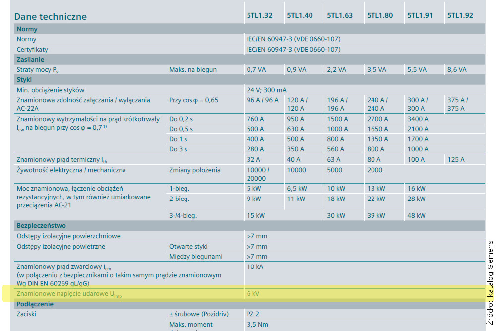 Na przykładzie dwóch producentów: Hager i Siemens sprawdźmy jakie maksymalne napięcie udarowe Uimp wytrzymują rozłączniki modułowe?